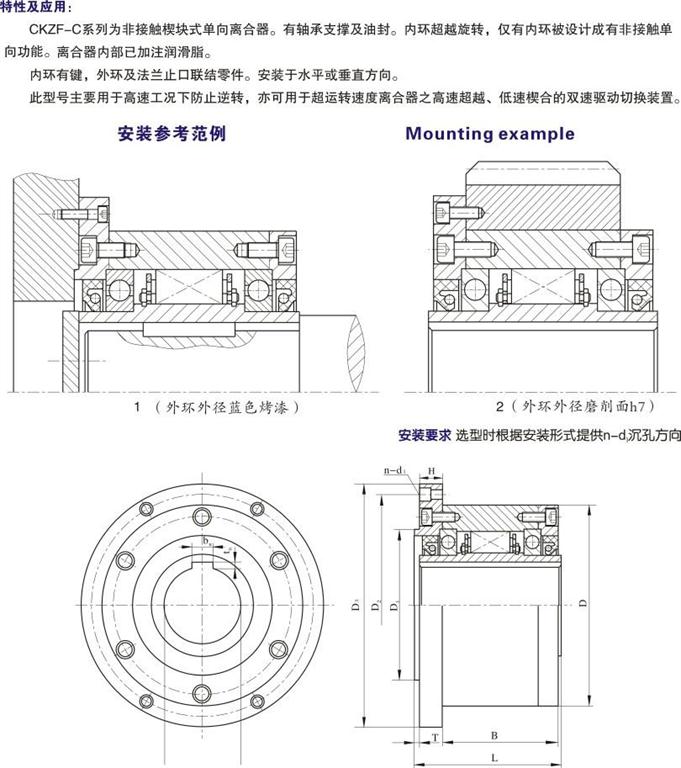CKZF-C系列為帶軸承非接觸楔塊式單向離合器