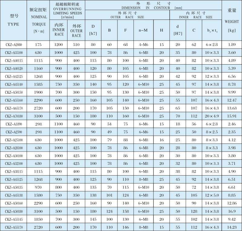 CKZ-A 楔塊式單向離合器詳細內容介紹