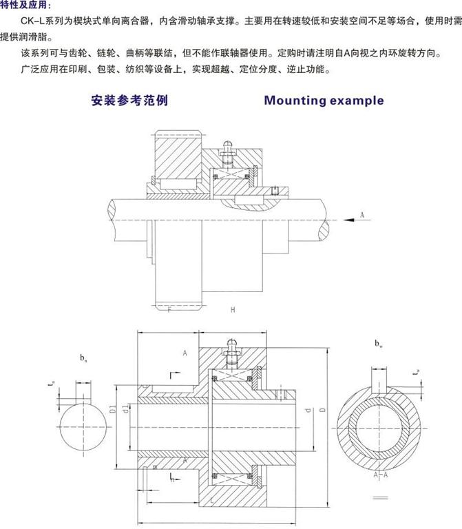 CK-L系列為楔塊式單向離合器,內(nèi)含滑動軸承支撐。