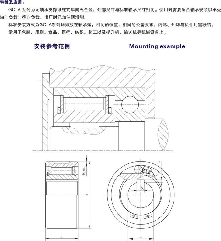 GC-A系列為無軸承支撐滾柱式單向離合器,外形尺寸與標準軸承相同。