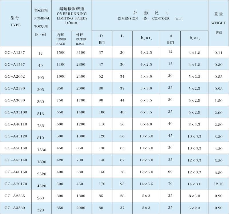 GC-A 滾柱式單向離合器詳細內容介紹