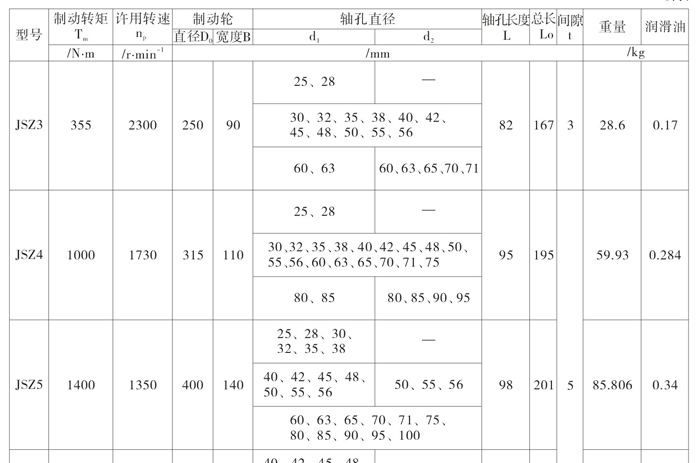 JSZ型帶制動輪型聯軸器詳細內容介紹